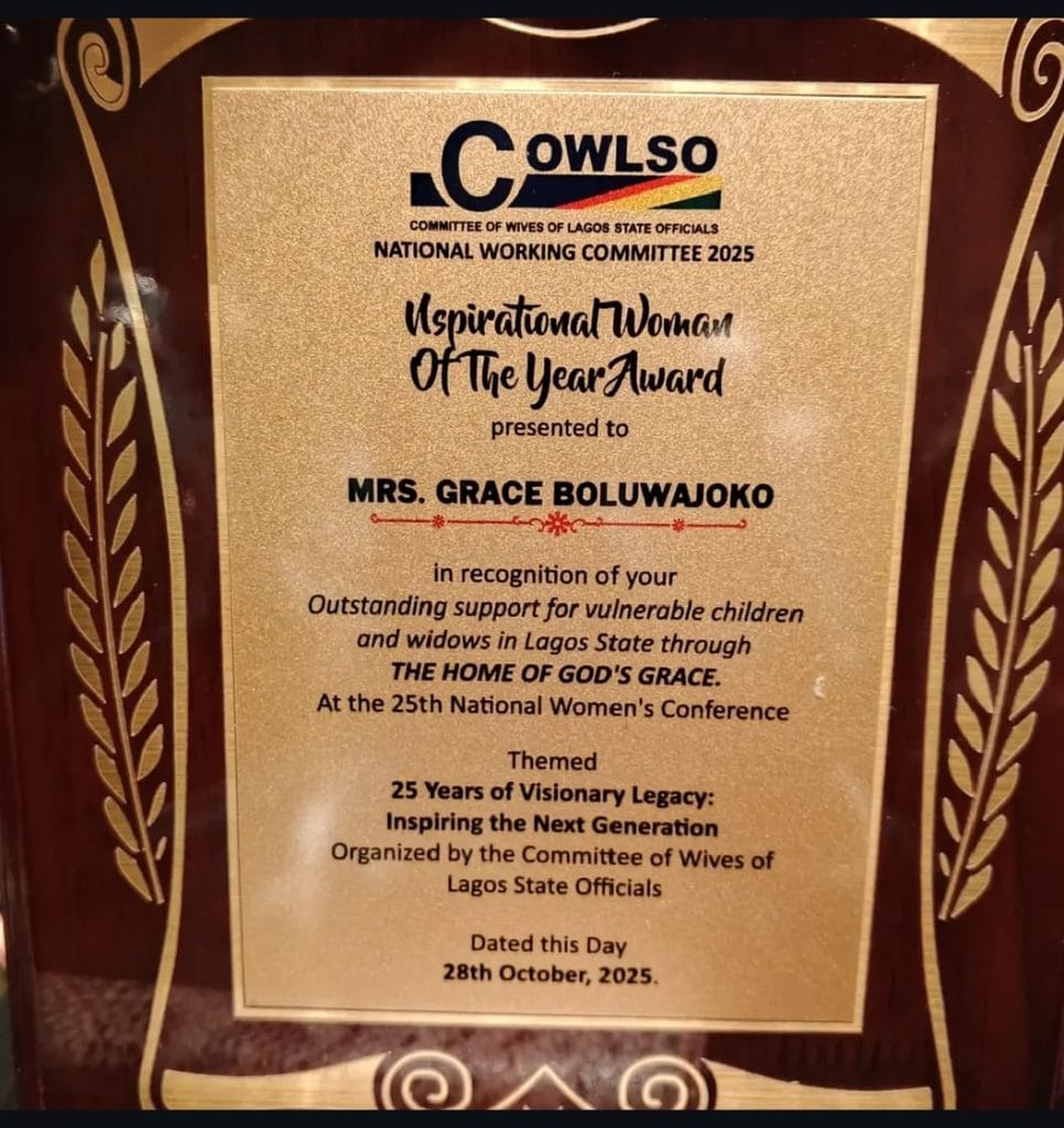 Congratulations to our inspiring, courageous, and dedicated founder and president, Mrs Grace Boluwajoko, on being honored as Inspirational Woman of the Year at the ongoing National women Conference 2025.